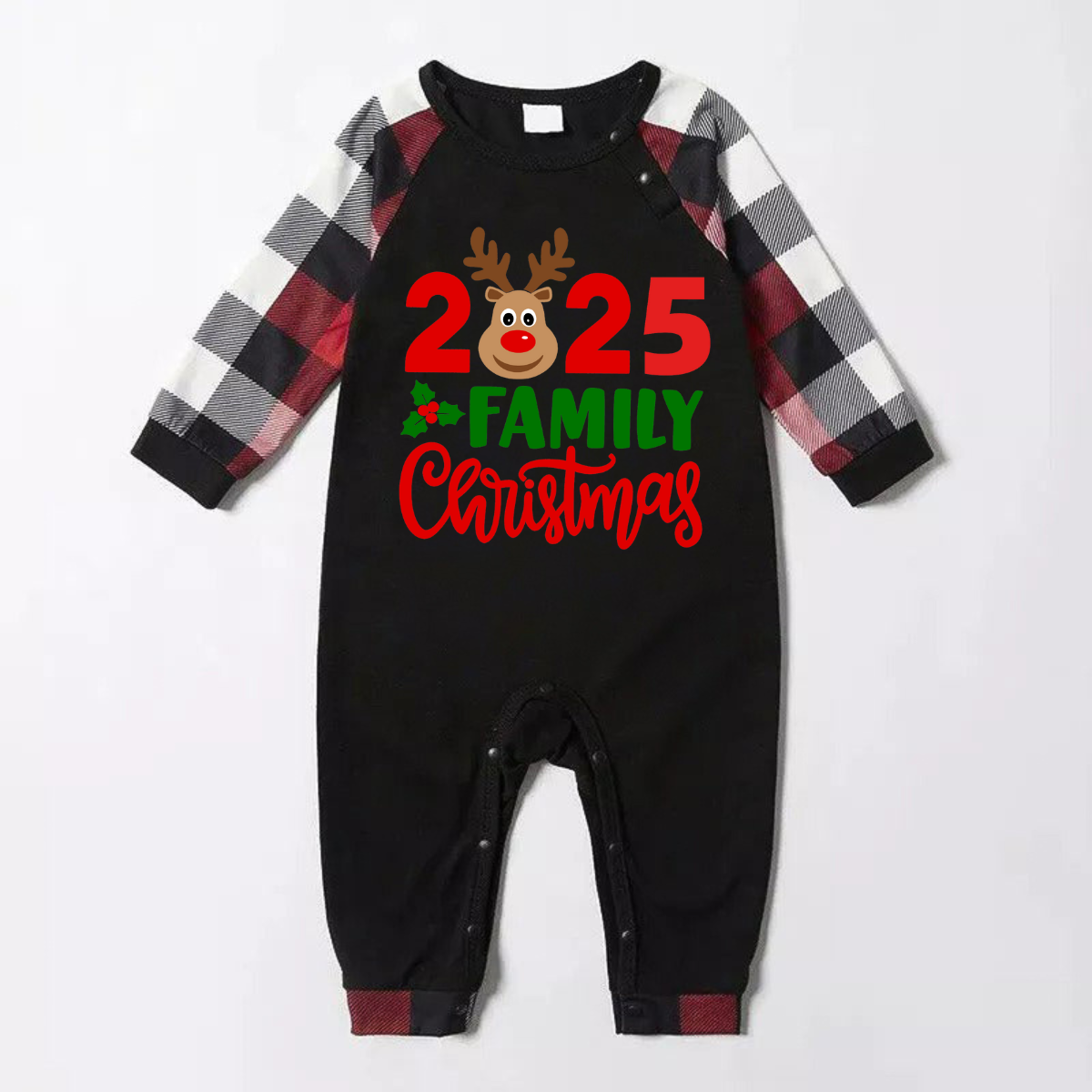 "2025 Family Christmas" Moose Letter Prints Red & Black & Grey & White Plaid Family Matching Pajamas