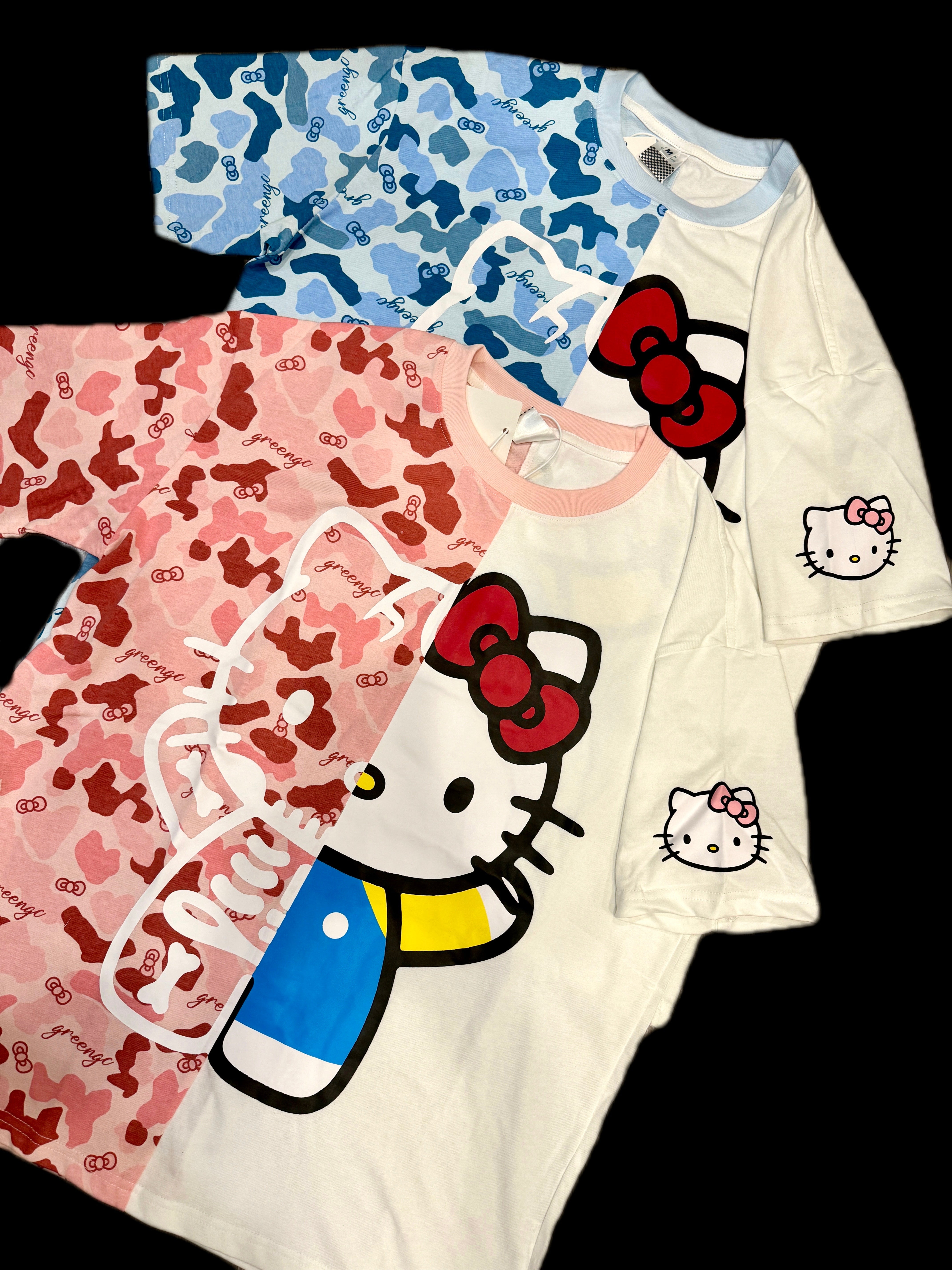 Hellokitty Skeleton Half Camouflage Sleeves Short Sleeve Tee Casual Summer T Shirt Top