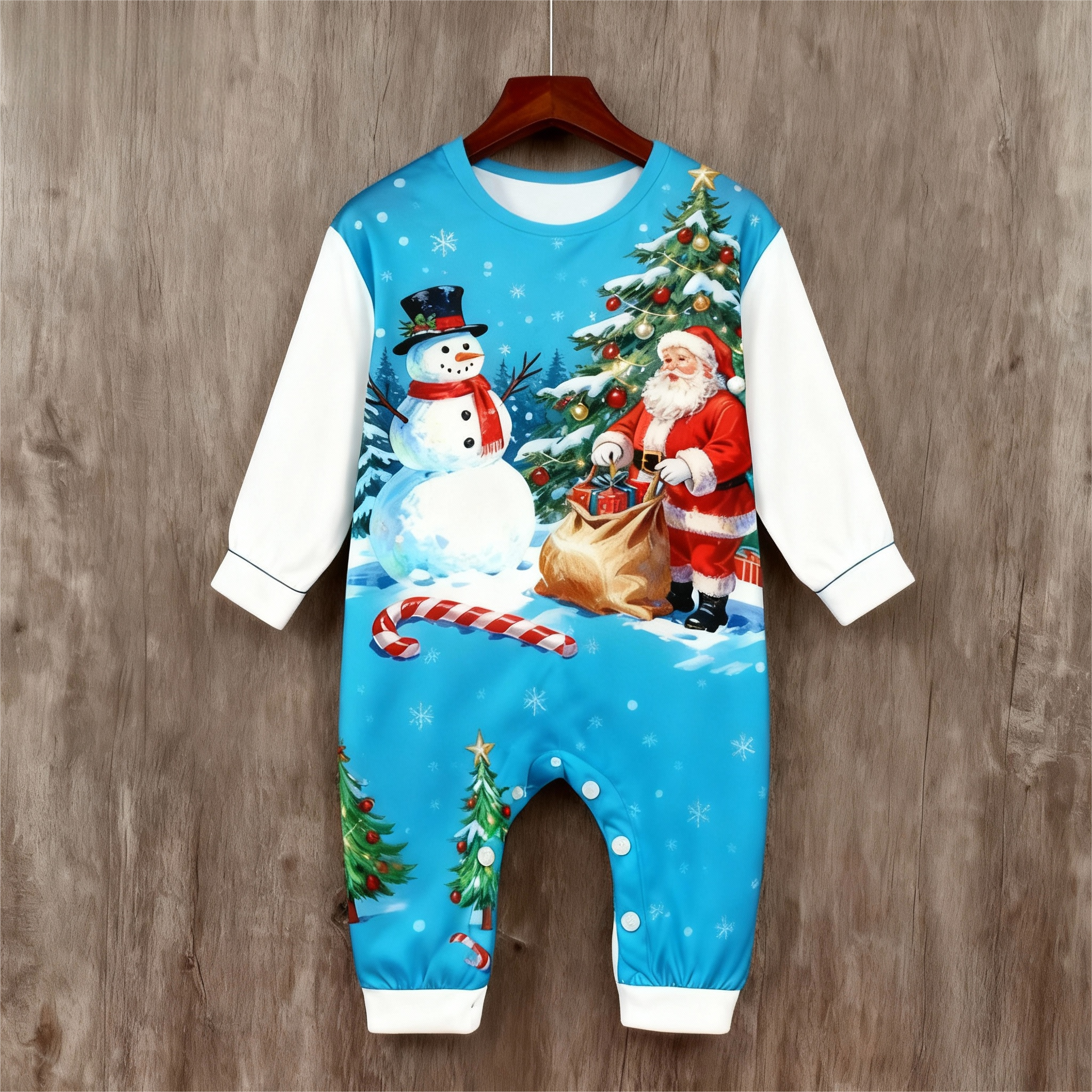 Holiday Family Button-Up Santa and Snowman Printed Satin Christmas Pajamas Set