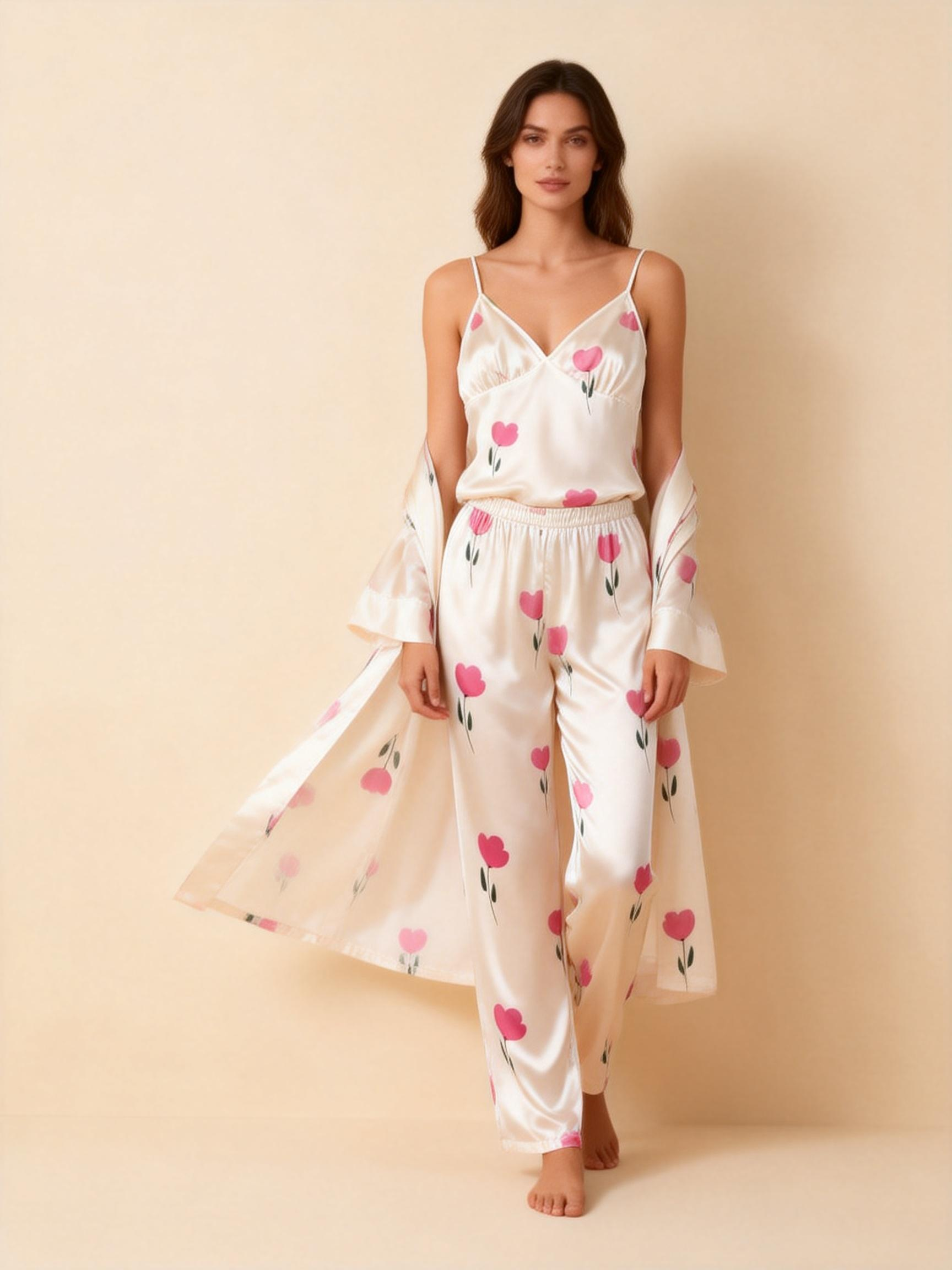 Premium Satin Nightwear Trio With Soft Florals