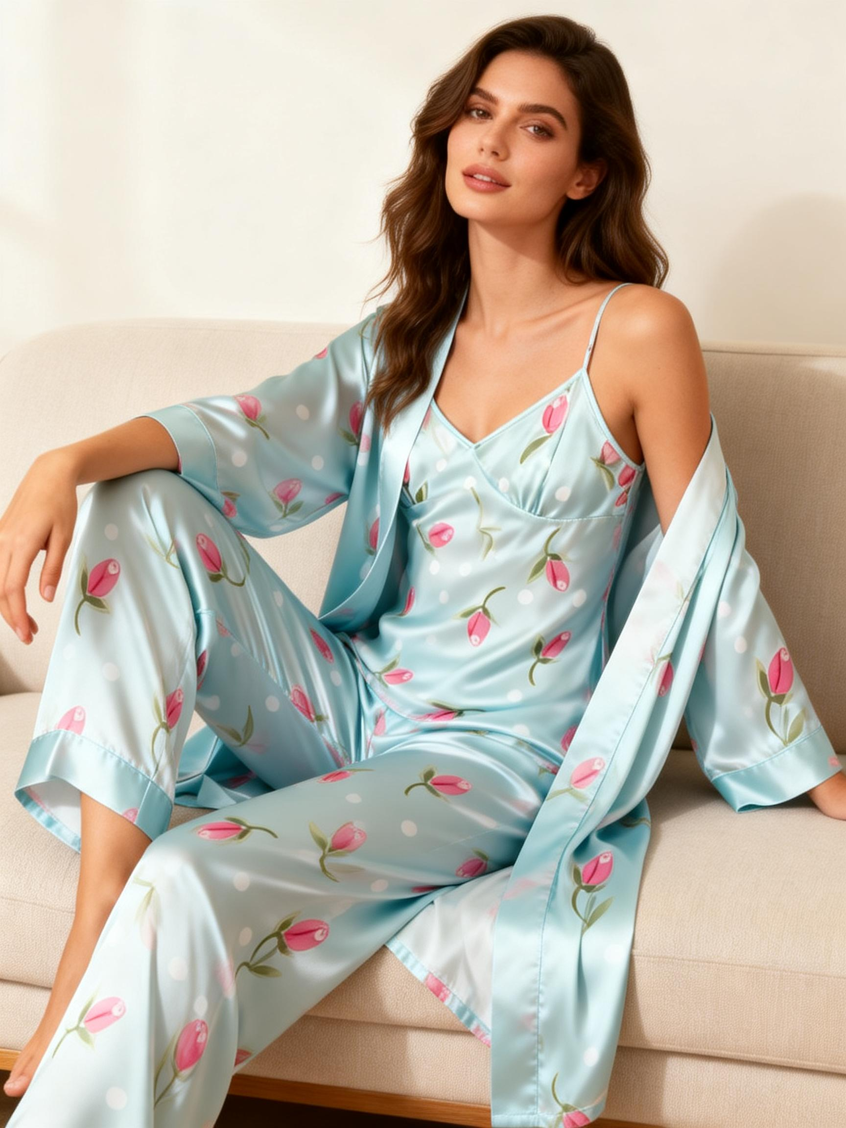 Women's 3-Piece Pink Floral & Polka Dots Loungewear